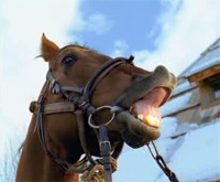 Shooting of this TV ad was made in Küstendorf. We see some funny characters and a laughing horse ... of course, with gypsy music.